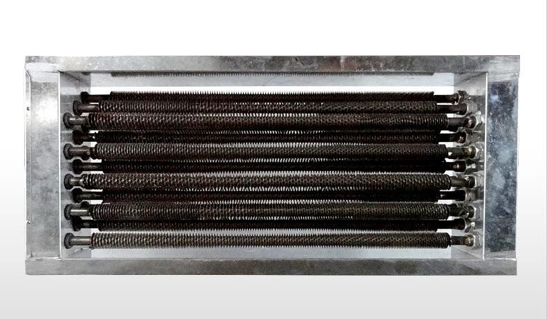 风道式辅助电美女黄片软件,也是翅片式辅助电美女黄片软件,一般应该于工业风道,空调风道与各行业通过空气加热提高输出空气温度的场合。翅片式辅助电美女黄片软件采用优质的不锈钢管和不锈钢散热片等制成,具有抗腐蚀、不生锈、绝缘性能强、散热均匀、热效率高、使用寿命长、自动控温等特点。